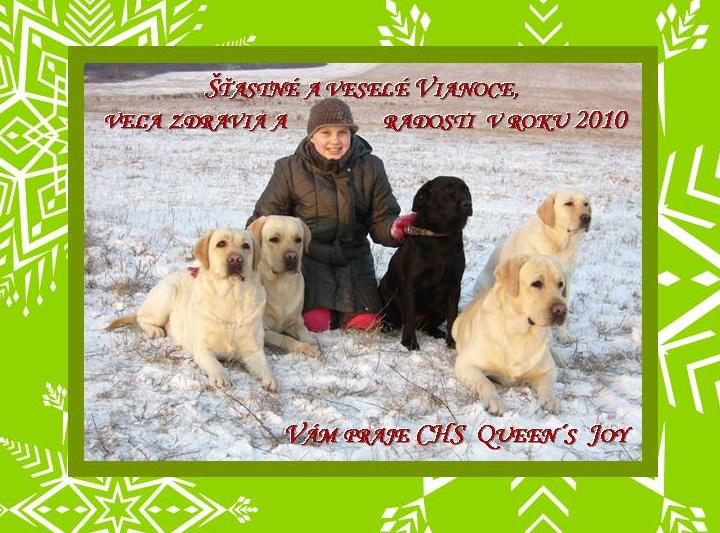 02/05/2009 ŠVR Kosorín, rozhodca Krutská (ČR). Jogi V3, Gomez V2 R-CAC, Janne V3, Jazmina V4 , viac info. 18/04/2009 dnes nás prišiel navštíviť brat Jogiho a Janne Jovany (Charlie), veľmi nás to potešilo, že je taký krásny, je to veľmi milý labrador s úžasnou povahou, takou akú má mať labrador. 16/04/2009 nám prišlo z USA vyhodnotenie optigenu Queenky s výsledkom OPTIGEN B. 14/04/2009 dnes som dostala krásne fotky šteniatok po našom Gomezovi, šteniatka sú krásne tučnučké a majú veľmi pekné hlavičky. Ešte sú voľné sučky, v prípade záujmu kontaktujte chovateľa. 30/03/2009 CVP Nitra, rozhodca L.Voláriková SK viac informácii .
