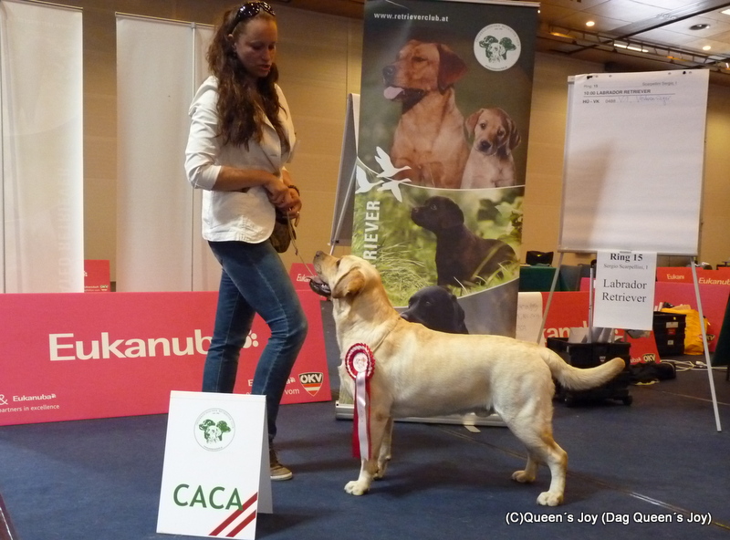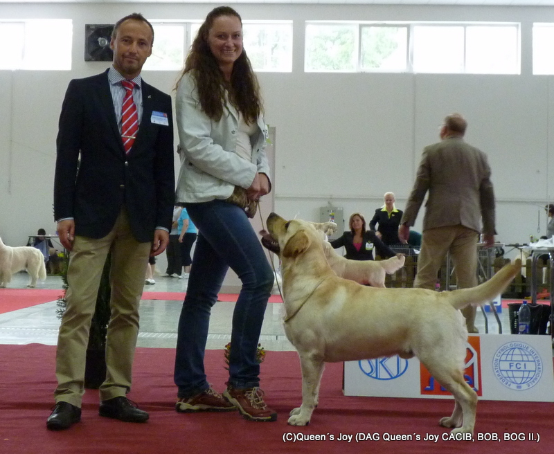 II. Grace Queen´s Joy VN1 4/6/2012 Dňa 30.6.2012 sa v chovateľskej stanici "Sun in your eyes" narodili krásne žlté šteniatka, otcom šteniatok je náš Gomezik , viac v sekcii šteniatka . V dňoch 26.-27.5.2012 sa konala dvojdňová Medzinárodná výstava psov CACIB Komárom (HU). V sobotu posudzoval Ivan Vasiljevic (SRB) a v nedeľu Herbert Kelemenn (D), Daguško "Dag Queen´s Joy" po obidva dni v triede strednej V1 CAC a Res. CACIB. Ambruška "Aldamity Sound Like a Melody"v triede pracovnej V3 v sobotu a v nedeľu V2 R-CAC. Angelina Queen´s Joy náš odchov v nedeľu v triede šampiónov V2 R-CAC. Veľmi sa tešíme z krásnych výsledkov a gratulujeme !!!!