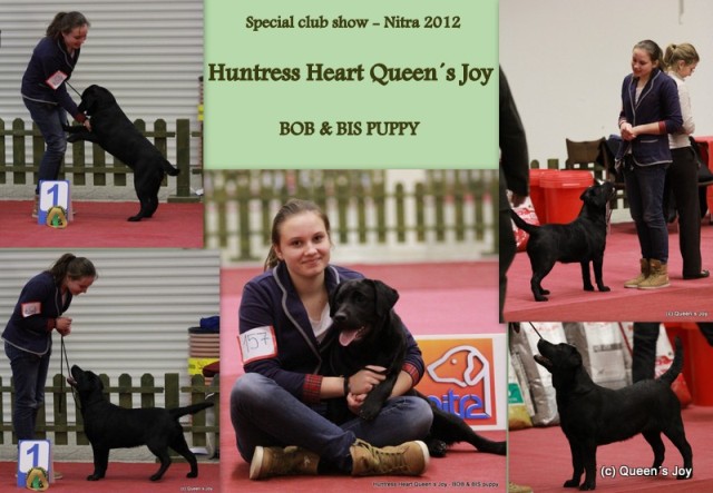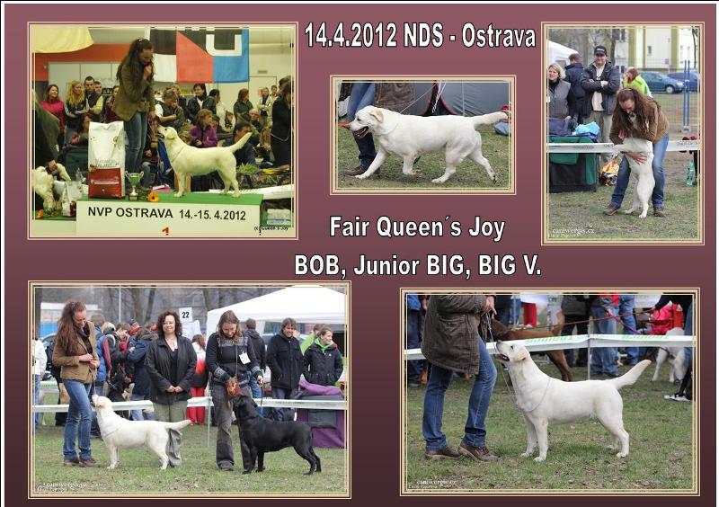 14/5/2012 Krásny úspech našej chovateľskej stanici Náš odchovanec Carleton Queen´s Joy získal svoj druhý šampionát a stal sa "Šampión Cyprusu" Ďakujem za krásnu prezentáciu nášho odchovu a zo srdiečka gratulujem!!! """""""""""""""""""""""""""""""""""""""""""""""""""""""" 11.5.2012 Klubová výstava retrieverov - Bratislava, rozhodca: Gerda Groeneweg (NL) CHS Barking Voices. Dag Queen´s Joy v triede strednej V1 CAC, Klubový víťaz, BOB ( Best of Breed ). Nové foto . Grace Queen´s Joy na svojej prvej výstave v triede šteniatok VN1 BOB Puppy ( Best of Breed Puppy ), krásny výsledok a krásne predvedenie. Gratulujem!!!!! Fair Queen´s Joy " Kikuška" v triede mladých V3 Angelina Queen´s Joy v triede pracovnej V1 CAC Aldamity Sound Like a Melody " Ambruška" v triede šampiónov V2 R-CAC. Veľmi sa teším z krásnych výsledkov, ďakujem za krásne posudky a krásnu prezentáciu nášho odchovu, proste veľké ĎAKUJEM a GRATULUJEM !!!!!