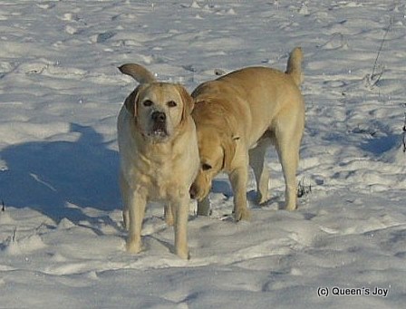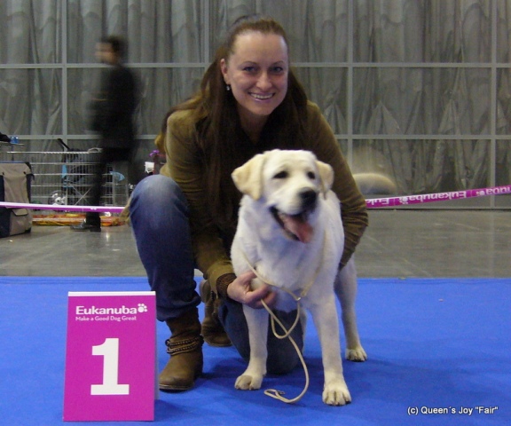 "Maďarský šampión krásy mladých" 7/2/2012 4.-5.2.2012 Duo CACIB Brno (CZ), rozhodcovia Mary a Martin O´Donoghue (IRL) kennel Philipstown. Daguško v triede mladých v sobotu V4 a v nedeľu V2. Kikuška v triede mladých vo veku 9 mesiacov a v konkurencii 16 krásnych sučiek po obidva dni V1 CAJC a BOJ ( Best of Junior), stala sa čakateľkou Českého šampióna mladých. Ambruška v triede pracovnej v sobotu V2 R-CAC a v nedeľu V4 . Veľmi sa tešíme z krásnych výsledkov našich psíkov, ďakujeme rozhodcom za krásne posudky. Gratulujeme!!! Fair Queen´s Joy 2x CAJC a Best of Junior Dag Queen´s Joy V4/V2 2/2/2012 Nové fotografie G-vrhu vo veku 8 týždňov. Vytvorená fotogaléria Ambrušky " Aldamity Sound Like a Melody. Nové foto Kikušky " Fair Queen´s Joy" vo veku 9 mesiacov a Daguška Queen´s Joy vo veku 15 mesiacov. """""""""""""""""""""""""""""""""""""""""""""""""""""""" 28.1.2012 Wintershow Trenčín, rozhodca J. Matyáš (SK) Angelina Queen´s Joy v triede pracovnej V1 CAC, CACIB a BOB, tým splnila podmienky pre udelenie titulu "Šampión Slovenska". Angelinke a Katke zo srdiečka gratulujem a ďakujem za krásnu prezentáciu nášho odchovu !!! """""""""""""""""""""""""""""""""""""""""""""""""""""""" 21.1.2012 oslávila naša Ambruška svoje druhé narodeniny. Prajeme jej všetko najlepšie !!! """""""""""""""""""""""""""""""""""""""""""""""""""""""" 14.1.2012 sa konal Český Šampión šampiónov v Prahe, Angelinka získala krásny úspech, medzi labradormi bola víťazka plemena a postúpila o víťaza VIII. skupiny, kde získala krásne III. miesto (BOG III. miesto). Angelinke a Katke zo srdiečka gratulujeme a ďakujeme !!! Veľmi sa tešíme !!!