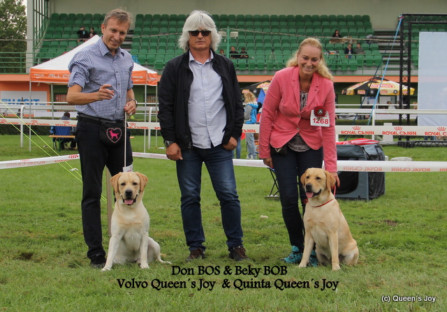 2016 Klubový víťaz mladých 2016 - Jairo Víťaz špeciálnej výstavy retrieverov 2016 - Kimmy Víťaz Šampión šampiónov v (HU) - Jackpot res.BIS na špecialnej výstave retrieverov - Kimmy BIS III. miesto na MVP - Jairo res.BIS junior a BIS junior III. miesto - Jairo 5 x BOG - 4 x Jairo a raz Kimmy 2 x BOG junior - Jairo 16 x BOB - 8 x Jairo 3 x Jackpot 4 x Kimmy a Beky 11 x BOS - 2 x Kimmy 3 x Jackpot a 3 x Beky 9 x BOJ - 7 x Jairo a 2 x Beky 13 x CACIB, 4 x res.CACIB, 7 x CAJC/HPJ, 27 x CAC/CACA Jairo Quintana Queen´s Joy sa stal Šampión mladých Slovenska a Maďarska, v Slovakia dog cup a Open Slovakia dog cup 2016 bol vyhodnotený ako Najlepší jedinec VIII.skupiny a Top labrador za rok 2016 Beky Quinta Queen´s Joy sa stala Šampiónka mladých Slovenska a Šampiónka Maďarska a Rumunska Jaguar Jackpot v.d.Weeward sa stal Šampión Slovenska, Maďarska, Rumunska a Grand šampión Slovenska, splnil podmienky pre udelenie titulov C.I.E a C.I.B Kimmy Night LimitEdition z Choče sa stala Šampiónka a Grand šampiónka Slovenska stihla porodiť a odchovať krásne šteniatka a tri mesiace po šteniatkach hviezdila vo výstavnom kruhu Wilson od Himalajskeho cedru náš čokoládový macko sa stal Český grand šampión a boli mu udelené tituly C.I.E a C.I.B Ďakujeme našim krásnym labroškom, ďakujeme rozhodcom, ďakujeme našim krásnym odchovom za prezentáciu a zároveň gratulujeme k úspechom !!! Ďakujem Vám